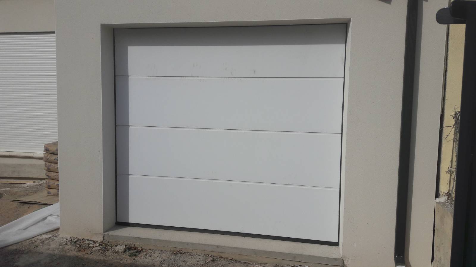 Différentes textures sont disponibles sur les panneaux de la porte sectionnelle. Il existe des finitions en Woodgrain (texture du bois) pour une esthétique traditionnelle. Cette texture est visible dans la galerie de photos sur la porte grise anthracite. La finition Sandgrain (aspect sablé) apporte une touche plus moderne comme on peut le voir sur la photo de porte sectionnelle blanche installée à Lunel ci-contre. Il existe l'aspect Silkgrain, pour une finition parfaitement lisse.