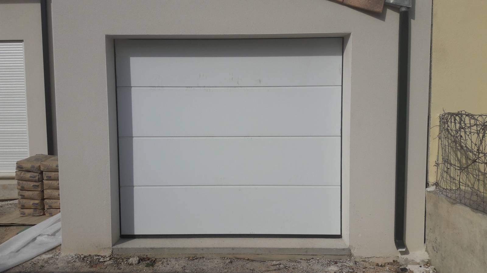 Et pour enrichir la gamme de décors, il est aussi possible d'avoir des panneaux à rainures larges (la porte blanche ci-contre), à rainures moyennes (la porte grise sur les photos), à petites rainures ou des portes sectionnelles à cassettes.